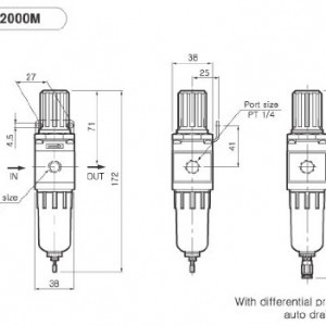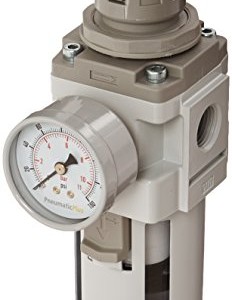 PneumaticPlus SAW2000M-N02BG Air Filter Regulator Combo Piggyback, 1/4″ Pipe Size, NPT-Manual Drain, Poly Bowl