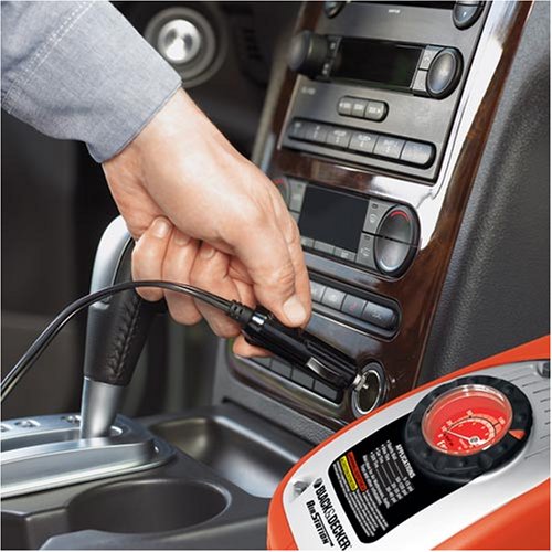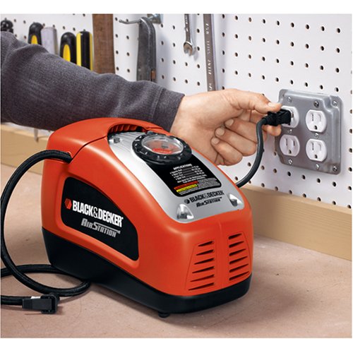 Powerful and portable, the Black & Decker ASI300 Air Station Inflator is the portable solution to household and on-the-go inflation needs. An illuminated pressure gauge gives you precise control, with an automatic shut off feature to make inflation easy. The ASI300 draws power from any home outlet or your vehicle’s lighter socket, so you can set it up where you need it.