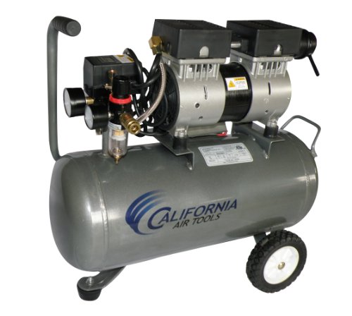 The CALIFORNIA AIR TOOLS 6310 Ultra Quiet air compressor is designed to be one of the quietest air compressors in the industry having only 60 decibels of sound. This air compressor makes less sound than a normal conversation (65 decibels). The powerful 1.0 HP motor operates at only 1680 RPM creating less noise and less wear. The Oil-Free Dual Piston Pump System is engineered for high performance and durability. The oil-free pump allows you to use in different temperatures and uneven terrains. The 6.3 gallon steel horizontal air tank with wheel kit provides extra air capacity and easy portability. The added water trap helps remove excess water from the air. This air compressor is ideal for anyone working where noise is a major issue