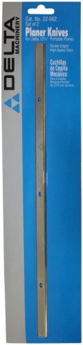 The DELTA 22-562 12-1/2-inch Steel Knife for 22-560 Planer includes two replacement knives for the DELTA TP400LS, 22-565, and 22-540 12-1/2-inch planer. The knives are made of high-speed steel for a super sharp edge, and they have twice the cutting life thanks to a reversible and double-edged design. Item Dimensions: Length = 15.5″, Height = 0.5″, Width = 3.9″.