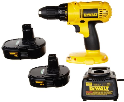 One DEWALT DC970K-2 18-volt drill/driver kit, including one 1/2-inch compact drill-driver, two 18-volt NiCAD batteries, one one-hour charger, and one contractor bag.