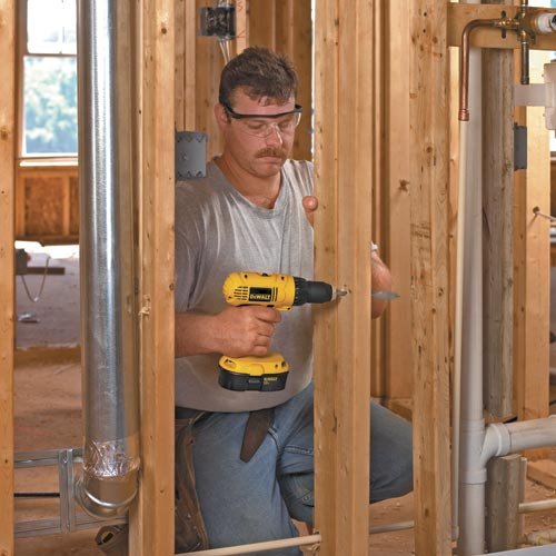 DEWALT’s DC970K-2 cordless 18-volt drill-driver kit maximizes performance while minimizing user fatigue. Its high-output motor (380 unit watts out) and dual-speed capability (0-450/0-1,500 RPM) maximizes efficiency for drilling and fastening applications, while its 9-inch length and 5.2-pound weight make it ideal for working in tight spaces and at awkward angles. The plastic 1/2-inch single-sleeve keyless ratcheting chuck provides a tighter bit grip for better bit retention and increased precision and accuracy. Two 18-volt NiCAD batteries are included with the kit, as well as a one-hour charger and a contractor bag for easy transport from one rugged job site to the next.