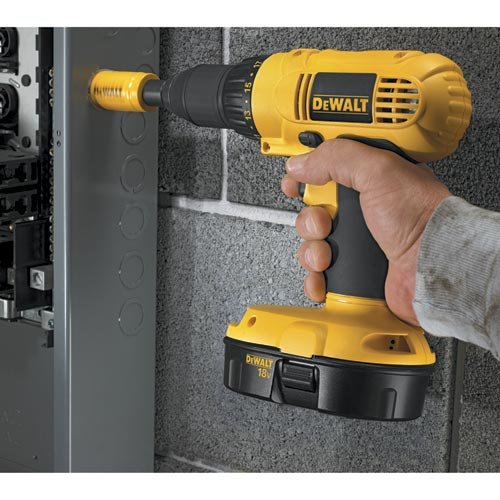DEWALT’s DC970K-2 18-volt drill-driver kit features a 1/2-inch drill-driver that’s ideal for drilling and fastening applications in a variety of materials (view larger). The kit includes two 18-volt NiCAD batteries and a one-hour charger so that you’re always powered up on the job site (view larger).