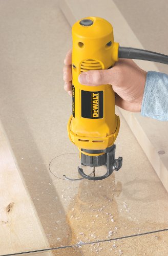 In recent years, rotary cutout tools have soared in popularity, due mainly to a series of television infomercials promoting one brand. Though it doesn’t receive the TV airplay of its main competitor, this DeWalt model uses a durable 5 amp motor–the most powerful motor yet in a cutout tool–making it a great tool for professional drywallers, electricians, and carpenters. To help battle dust infiltration, the tool features a sealed motor and switch, a must for any serious drywall tool. It also sports a quick-and-easy, tool-free bit-changing system and comes with both 1/8 and 1/4 inch collets. We really like the bump-off switch for quick tool shutdown and the simple and effective tool-free depth adjustments. Like other rotary cutout tools, this one uses spiral cutting bits, which work equally well plunging into a cut as they do laterally. In our test we found the DeWalt to be smooth running with low vibration. We had no problem plunging and cutting through 1-1/2 inches of solid birch, whizzing through drywall, and tearing through tile. In fact, this tool has more power than you’d expect from something of its size, and if you aren’t paying attention, it can get away from you–an easier to live with problem than lack of power. Some extraordinary claims have been made about rotary cutout tools, and while DeWalt’s cutout tool is as versatile as any we’ve tried, and a bit more powerful than most, it’s most effective at what it was designed for–quick cutouts in drywall, tile, and plywood. –Brian Trinen