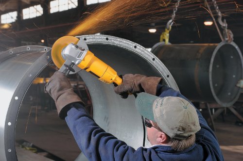 The DEWALT 7-inch medium angle grinder is a compact yet powerful grinding tool offering 13.0 Amp of power at speeds of up to 8,000 RPM. This heavy-duty tool features a rear-handle grip area for better control and comfort, an adjustable keyless guard that can be easily moved to a preferred position, and a spindle lock that makes changing wheels quick and easy. Other features include sealed ball and roller bearings to prevent debris from entering, external brush doors for easy access during servicing, and a two-position side handle for optimal control.