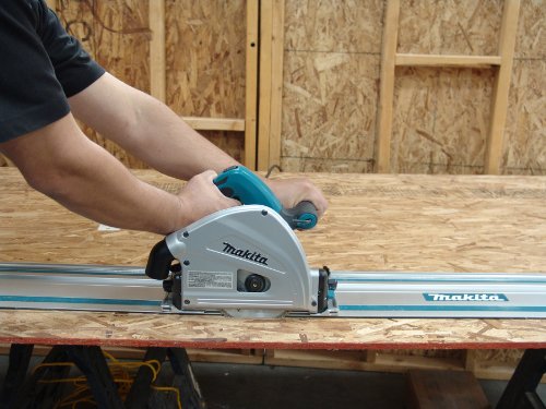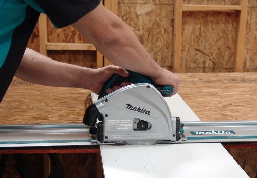Get precise, accurate cutting and a splinter-free mirror finish, without the table saw. Makita’s SP6000K 6-1/2-Inch Plunge Circular Saw delivers smooth, straight cuts. When you combine it with an optional guide rail system, constructed with anodized aluminum, the saw and rail system work together to produce accurate cuts with minimal tear-out. The saw combines a powerful 12 amp motor and a large cutting capacity with magnesium components for less weight and electronic speed control to maintain constant speed under load for smooth cutting and a splinter-free mirror finish. The SP6000K is a more portable option to a table saw and is ideal for use on the jobsite or in the shop. Includes 55 inch guide rail.
