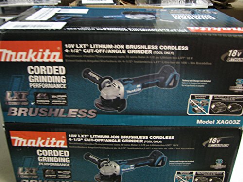 Makita delivers corded grinding performance without the cord with the 18V LXT Lithium-Ion Brushless Cordless 4-1/2″ Cut-Off/Angle Grinder (model XAG03Z, tool only, battery sold separately). It’s powered by a Makita brushless motor for longer run time, increased power and speed, and longer tool life. For the most demanding applications, Makita’s exclusive Automatic Speed change Technology automatically adjusts speed and torque during operation for optimal performance. The XAG03Z is ideal for grinding, cutting and sanding a wide range of materials including tile, concrete, pipe, conduit, and more.