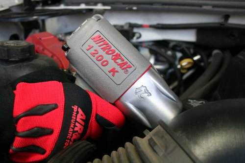 This NitroCat 1/2in. square drive impact wrench with 1295 ft.-lbs. of torque and Kevlar composite body outperforms anything in its class! It is used by many NHRA Top Fuel race teams. Kevlar adds high strength and durability to the 1200-K, making this tool a valuable addition to your air tool work force. Noise Level (dB): 86, Variable Speed: No, Case Included: No, Min. Hose Size (in.): 3/8, Hammer Mechanism: Twin clutch, Reversible: Yes, CFM at Load: 4.5, Inlet Size (in.): 1/4, Average Air Consumption (CFM): 4, Drive (in.): 1/2, Impacts Per Minute (IPM): 950 under load, Operating PSI: 90-120, Speed – No Load (RPM): 8,000, Tool Length (in.): 8 1/4, Max. Torque (ft.-lbs.): 1,295, Working Torque (ft.-lb.): 200-900, Tool Weight (lbs.): 4 1/2
