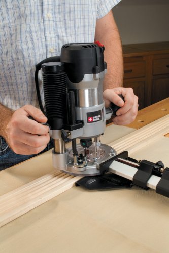 With its user-friendly design and efficient, yet low-noise 2-1/4 HP motor with superior electronic feedback (10,000 – 23,000 RPM), the Porter-Cable 895PK offers precision for superior results. Brass post busing ensures durability, while a dust collection insert helps improve visibility and keep your workspace clean. For added convenience you can replace bits with one hand, a bypass control makes larger adjustments, and an easy-to-use knob tackles more precise and minute alterations to 1/128-inch. Made of durable die-cast aluminum, the 895PK makes it a breeze to make height adjustments and release the motor from above, rather than below, your workspace. It also works with most 890 and 690 router series bases and comes with a helpful CD-ROM that breaks down the process of constructing a work table, a carrying case with plenty of bit storage, a transparent sub-base, 1/4-inch and 1/2-inch self-releasing collets, one wrench, dust collection insert, and table-top height adjustment handle with measurement ring.