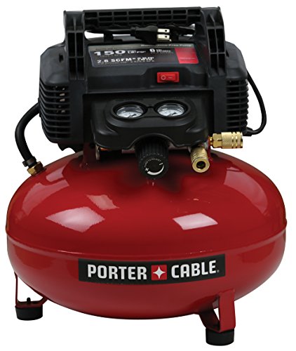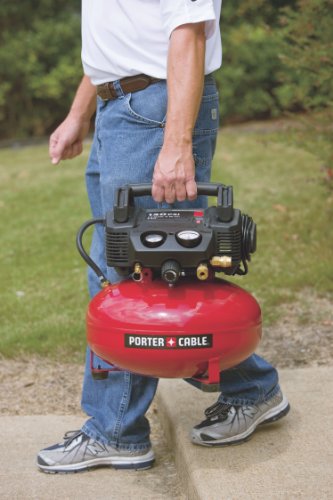 Highly portable and exceptionally easy to use, the Porter-Cable C2002 150-PSI, Six-Gallon Oil-Free Pancake Compressor packs a big punch in a small package. Perfect for everything from filling tires to firing nailers, this compressor features an induction motor that provides long life and optimum performance. For convenience, this efficient unit runs off of normal household circuits and offers mess-free, oil-free operation.
