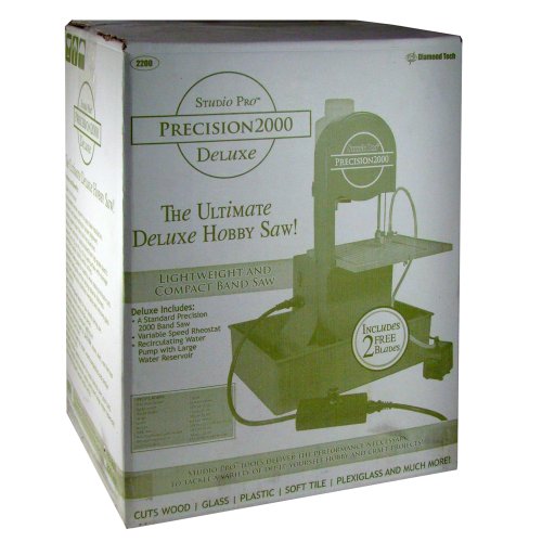 This is your dream saw. Weighing 11 pounds, the Deluxe Precision 2000 is ideal for the weekend warrior, hobbyist, crafter and do it for me types, who are tasked with cutting wood, glass, ceramic tile, metal, Plexiglas and other materials. Additionally, the band saw’s small footprint offers increased flexibility for cutting material on a countertop, desk top or any other tight spaces. The Deluxe Precision 2000 is the ultimate of hobby saws combining quality, affordability and a 3 Year Warranty. This saw is not only easy to use, but is one of the most versatile hobby band saws ever made. Includes: One standard Precision 2000 band saw, rheostat for variable speeds for more control over your cuts, durable recirculating water pump and large water reservoir eliminates frequent water bottle refills.