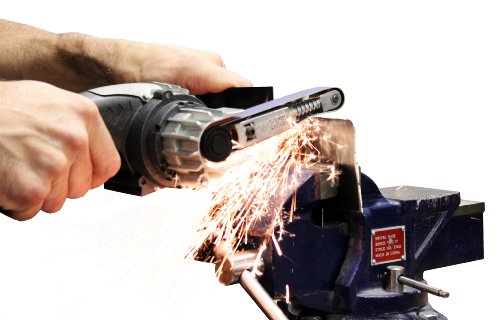 It also makes a handheld belt sander / power file for a wide range of grinding tasks in metal. It installs quickly thanks to the tool-less design, so changing attachments is quick and easy.